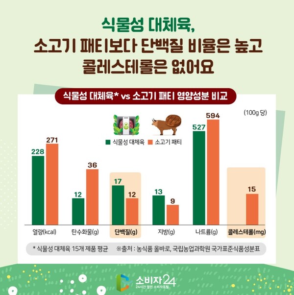 식물성 대체육의 영양 성분은 육류와 비교했을 때 몇 가지 중요한 차이점이 있습니다. 예를 들어, 식물성 대체육은 일반적으로 콜레스테롤이 없으며, 일부 제품은 단백질 비율이 높습니다.